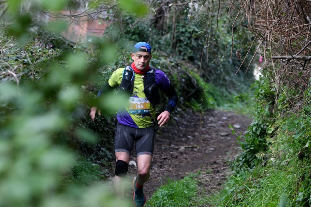 Chicho uno de nuestros socios llevando nuestros colores en el ultratrail de 55 km y 3000 de desnivel positivo celebrado en Quiroga, Lugo.