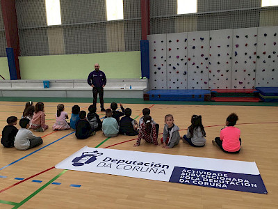 Seguimos coa Campaña da Escalada na escola, en colaboración coa Deputación da Coruña.E nesta ocasión acudimos ao CEIP Plurilingüe Gándara Sofan de Carballo para inaugurar o panel de escalada que o Concello fixo no centro. Todo o alumnado de primaria, despois de recibir unha breve charla sobre os Deportes de Montaña, practicaron os movementos básicos da escalada en bloque.