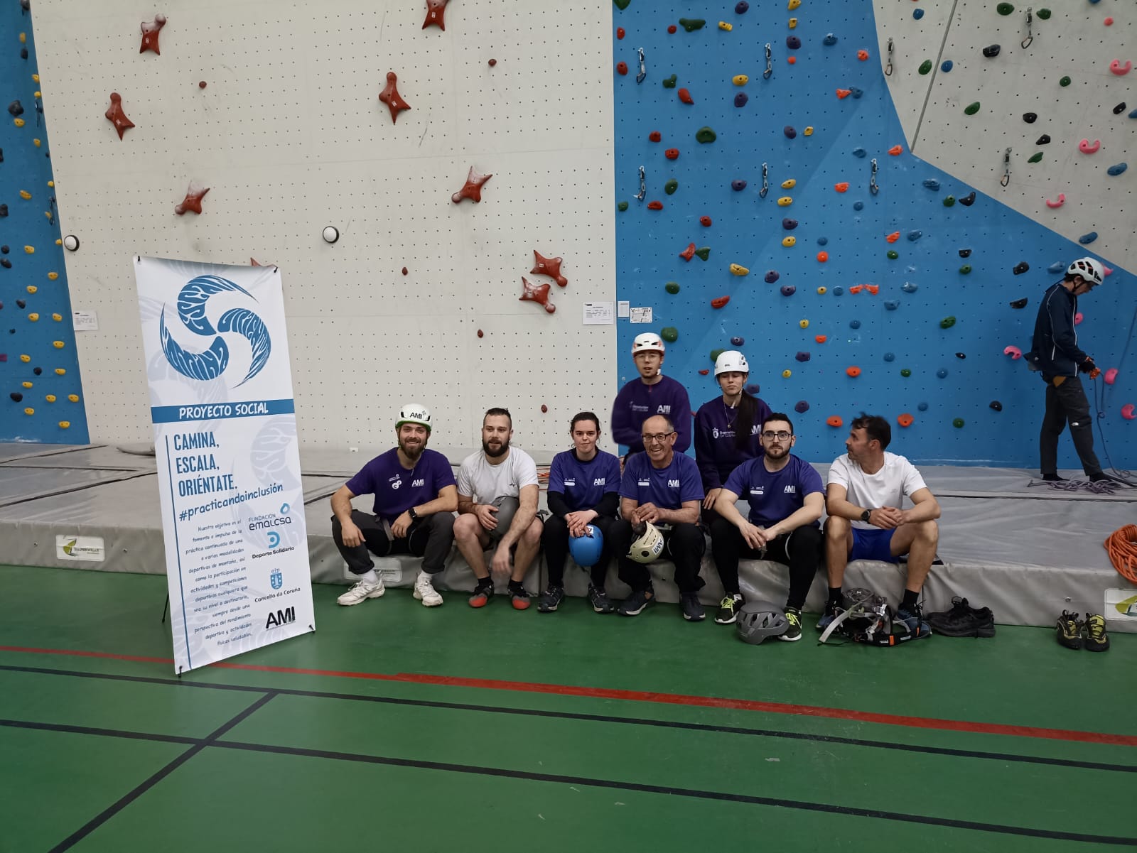 Un grupo de la ONCE, después de un bautismo de escalada en el mes pasado, realizará entrenamientos semanales de escalada en el Rocodromo de Riazor y en la sala de bloque del AMI durante los próximos meses.